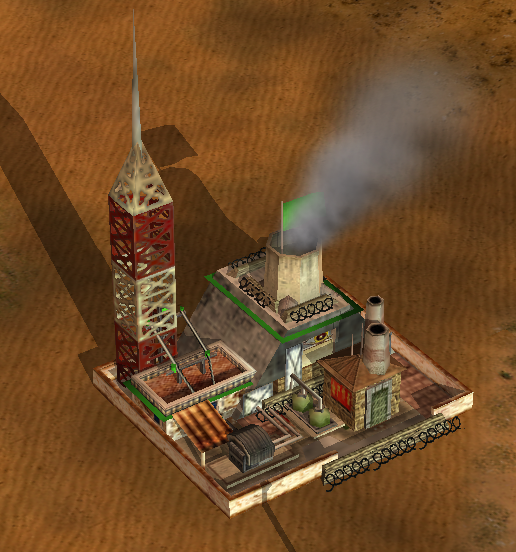2. Once I get the building to come out of the ground only, is it possible to have both buildings come up together, rather than the civilian one being built first then the power plant just appearing on to it? (See pic 2 for the end result.)